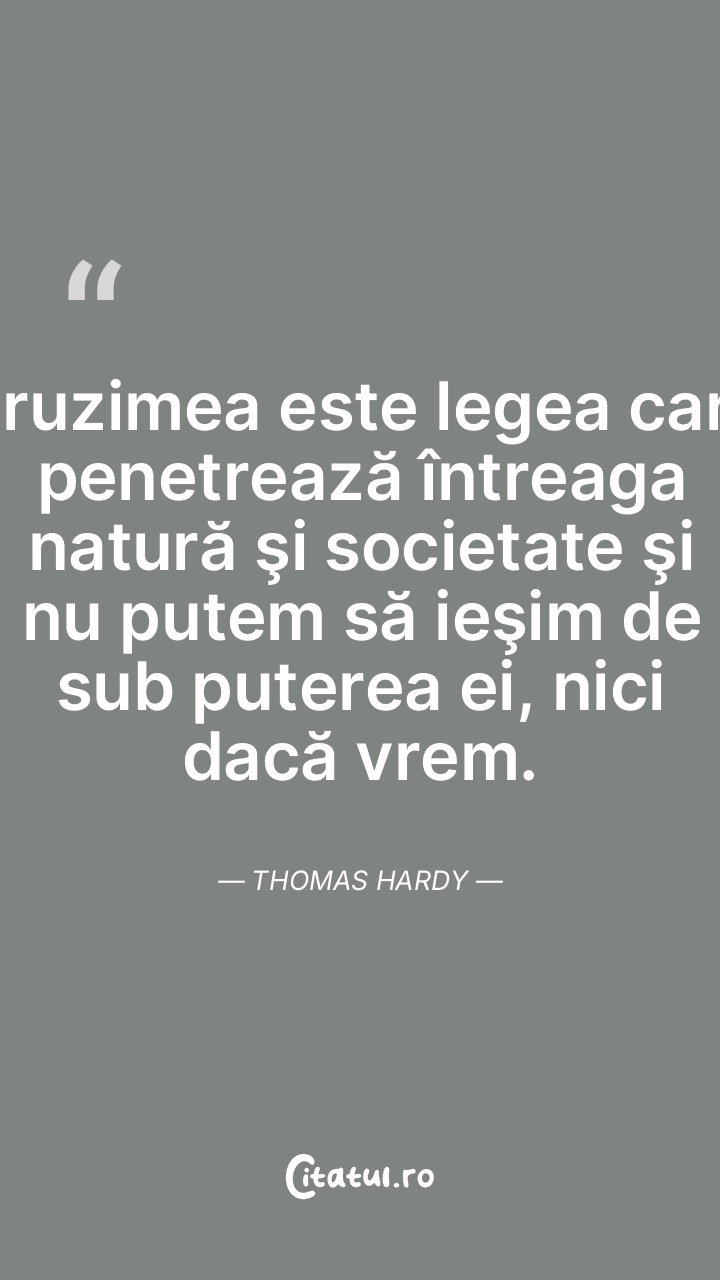Cruzimea este legea care penetrează întreaga natură şi societate şi nu putem să ieşim de sub puterea ei, nici dacă vrem. Thomas Hardy