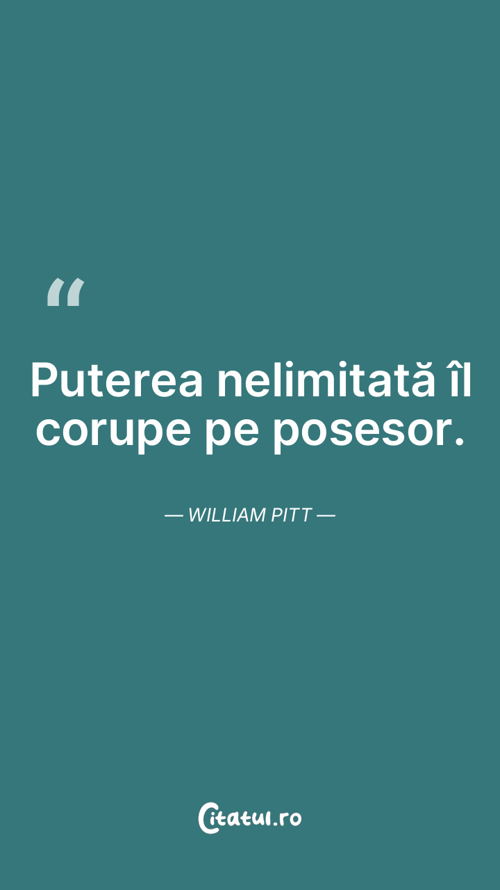 Puterea nelimitată îl corupe pe posesor. William Pitt