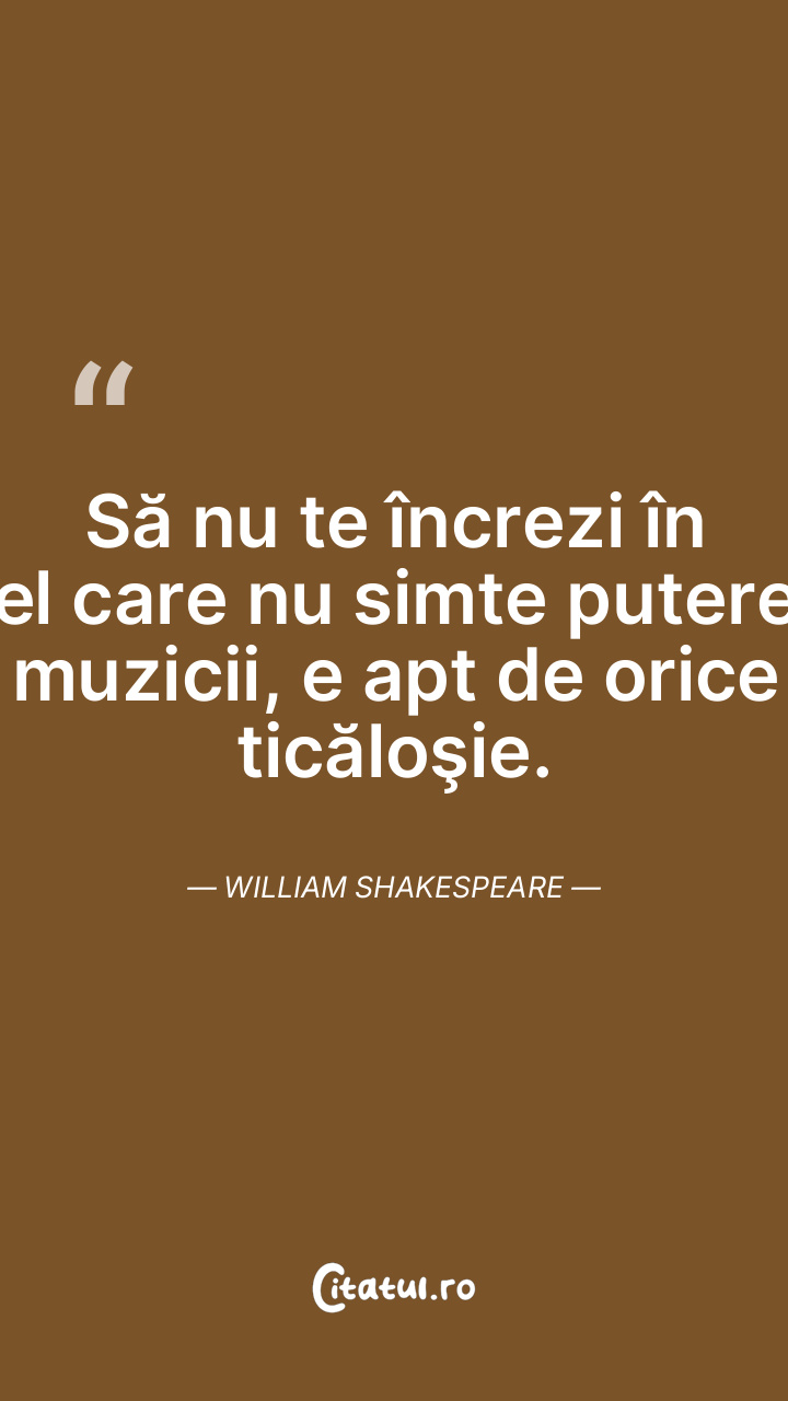 Să nu te încrezi în cel care nu simte puterea muzicii, e apt de orice ticăloşie. William Shakespeare