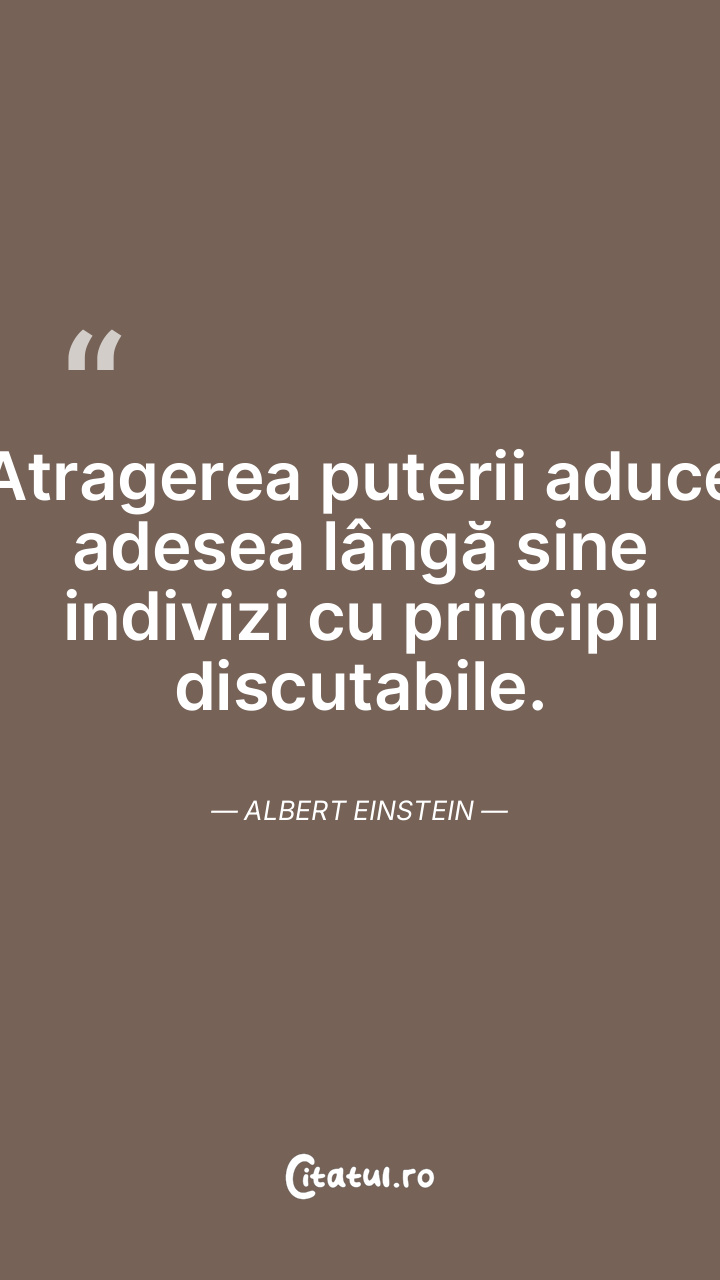Atragerea puterii aduce adesea lângă sine indivizi cu principii discutabile. Albert Einstein