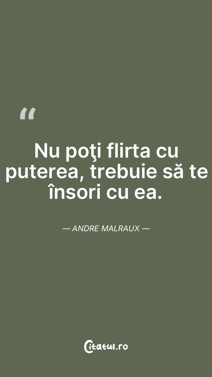 Nu poţi flirta cu puterea, trebuie să te însori cu ea. Andre Malraux