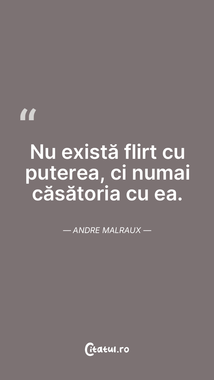 Nu există flirt cu puterea, ci numai căsătoria cu ea. Andre Malraux