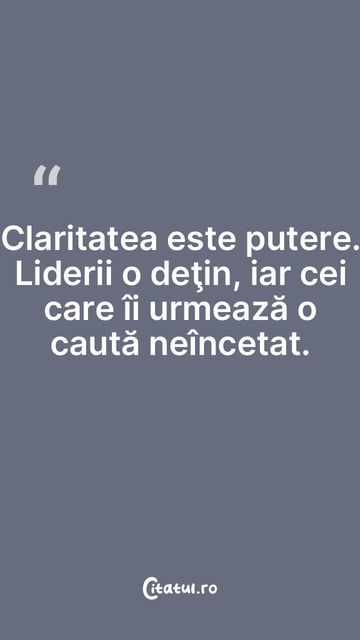 Claritatea este putere. Liderii o deţin, iar cei c...