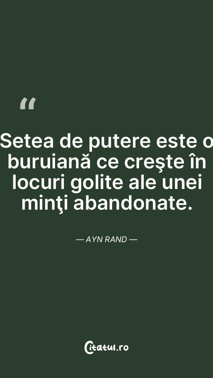 Setea de putere este o buruiană ce creşte în locuri golite ale unei minţi abandonate. Ayn Rand