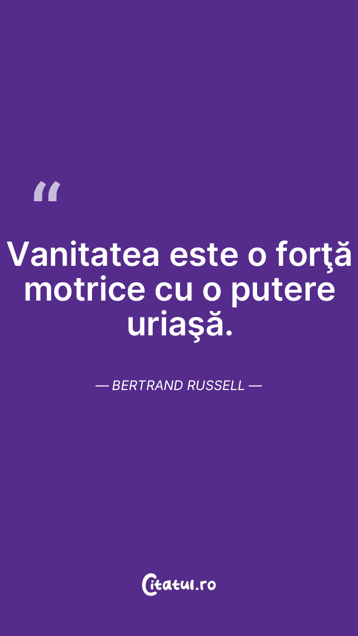Vanitatea este o forţă motrice cu o putere uriaşă. Bertrand Russell
