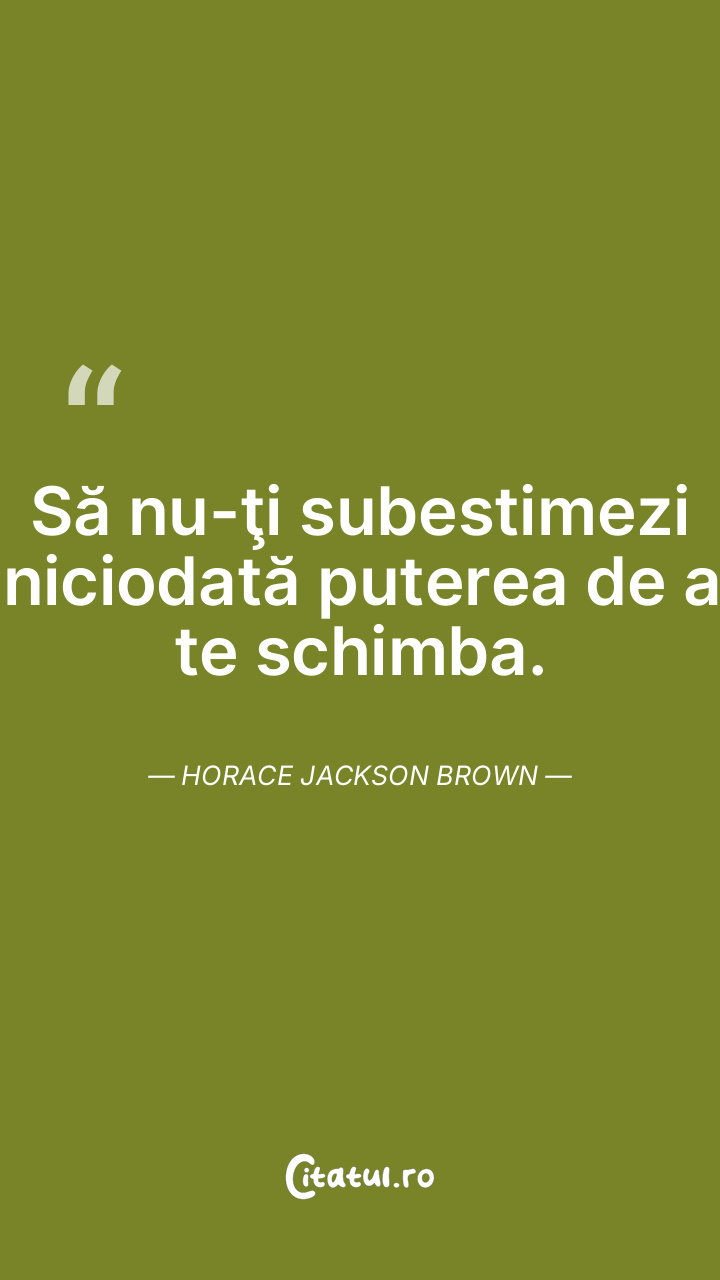Să nu-ţi subestimezi niciodată puterea de a te schimba. Horace Jackson Brown