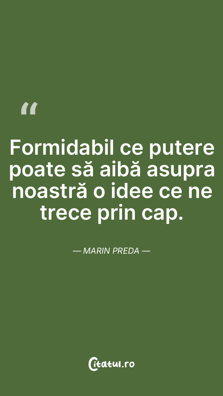 Formidabil ce putere poate să aibă asupra noastră o idee ce ne trece prin cap. Marin Preda