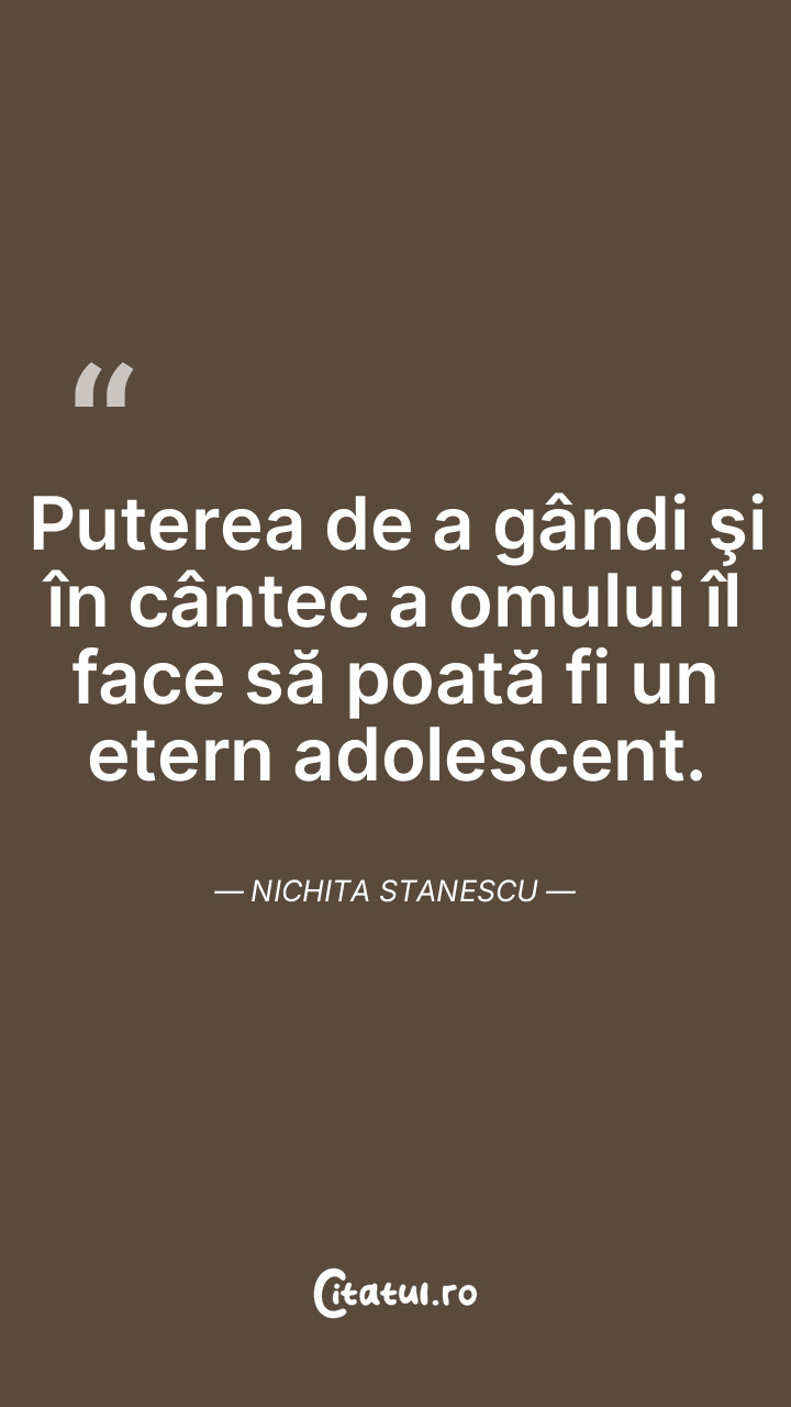 Puterea de a gândi şi în cântec a omului îl face să poată fi un etern adolescent. Nichita Stanescu