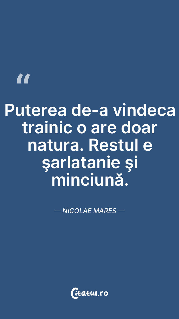 Puterea de-a vindeca trainic o are doar natura. Restul e şarlatanie şi minciună. Nicolae Mares