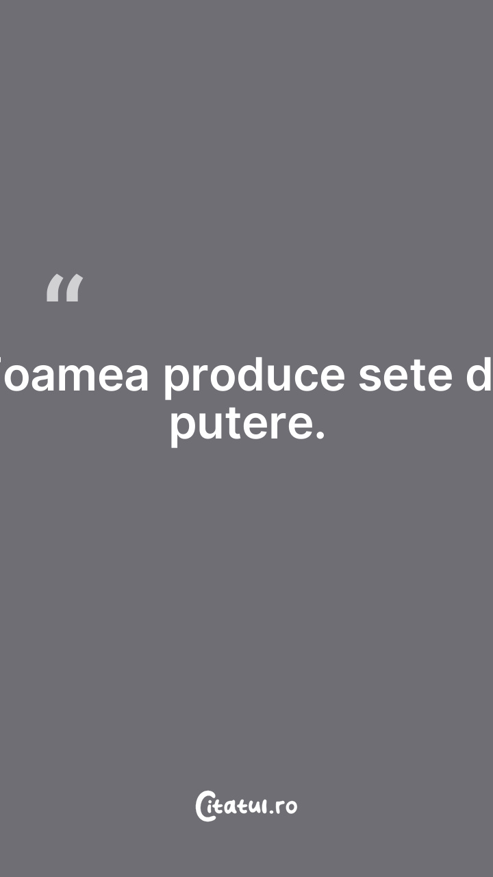 Foamea produce sete de putere. ... Categorie: citate motivationale Dificultate: Foarte ușor de citit! Votează: ★ ★ ★ ★ ★ (0/5 din 0) Distribuiți acest citat? Alegeți platforma preferată: Salvează citatul in telefon/pc Foamea produce sete de putere. Copiază Favorite Eroare