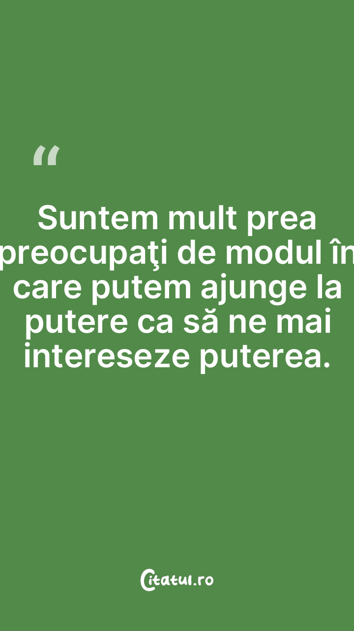Suntem mult prea preocupaţi de modul în care putem ajunge la putere ca să ne mai intereseze puterea.