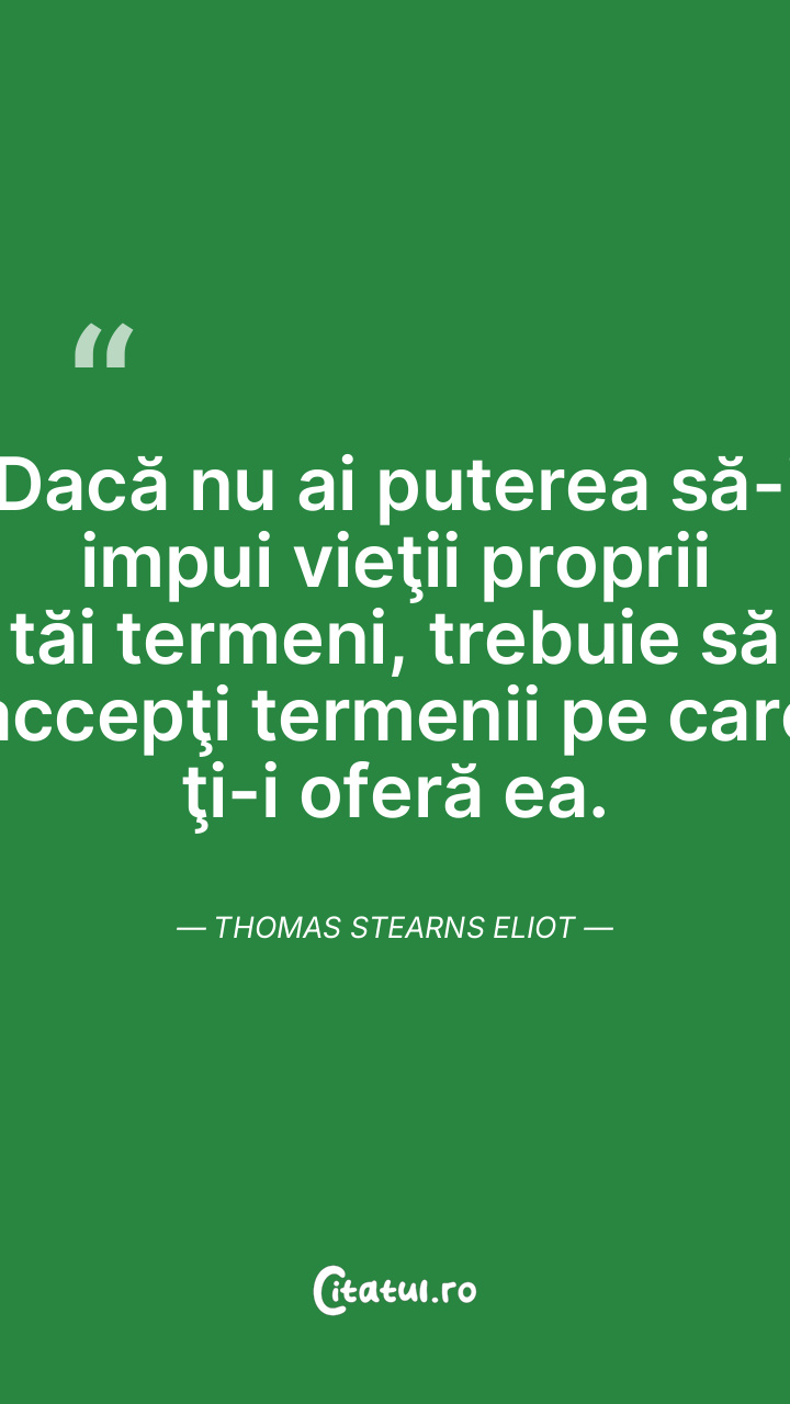 Dacă nu ai puterea să-i impui vieţii proprii tăi termeni, trebuie să accepţi termenii pe care ţi-i oferă ea. Thomas Stearns Eliot