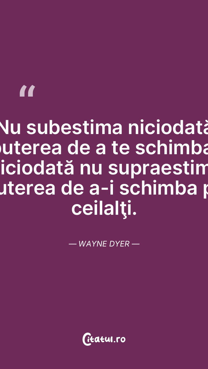 Nu subestima niciodată puterea de a te schimba. Niciodată nu supraestima puterea de a-i schimba pe ceilalţi. Wayne Dyer