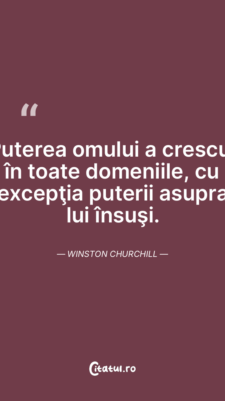 Puterea omului a crescut în toate domeniile, cu excepţia puterii asupra lui însuşi. Winston Churchill