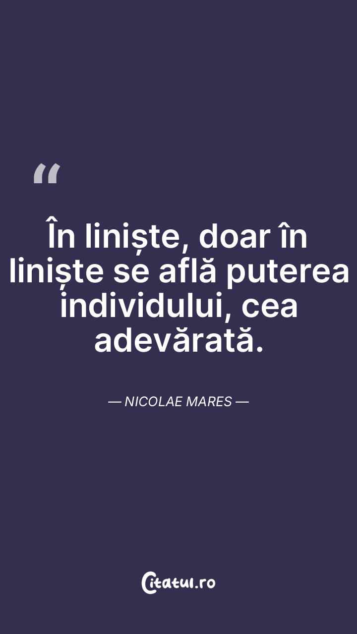 În liniște, doar în liniște se află puterea individului, cea adevărată. Nicolae Mares