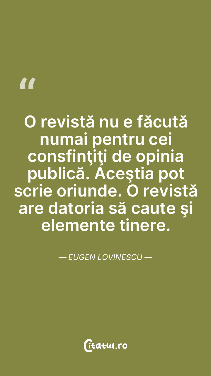 O revistă nu e făcută numai pentru cei consfinţiţi de opinia publică. Aceştia pot scrie oriunde. O revistă are datoria să caute şi elemente tinere. Eugen Lovinescu