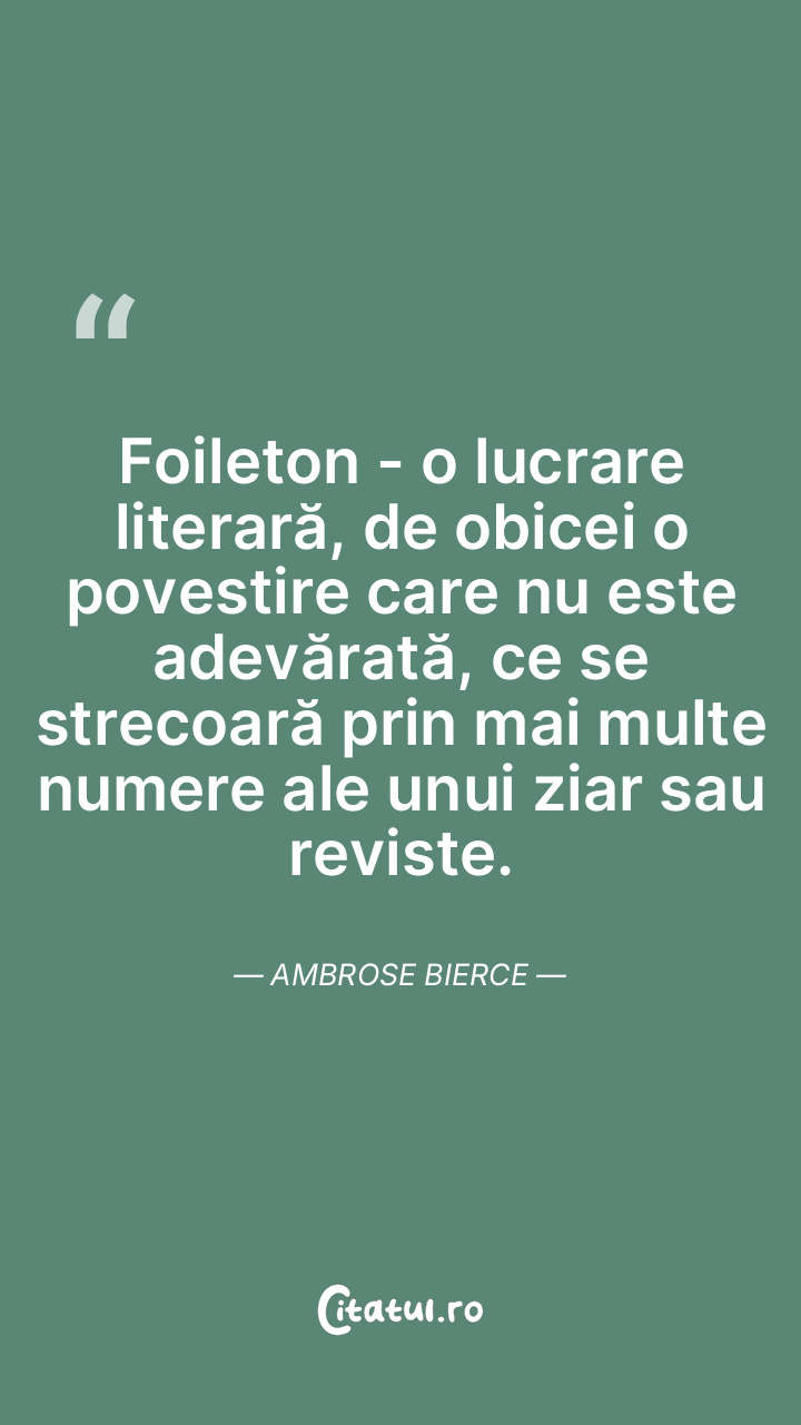 Foileton - o lucrare literară, de obicei o povestire care nu este adevărată, ce se strecoară prin mai multe numere ale unui ziar sau reviste. Ambrose Bierce