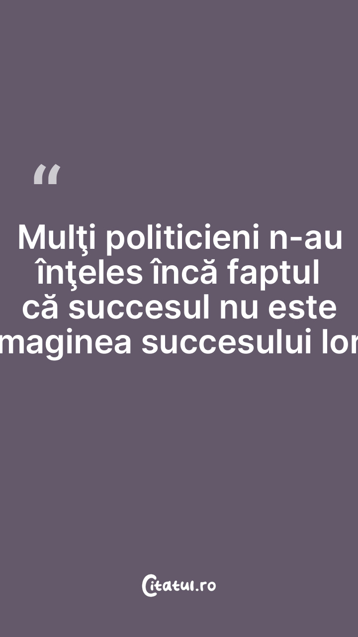 Mulţi politicieni n-au înţeles încă faptul că succ...