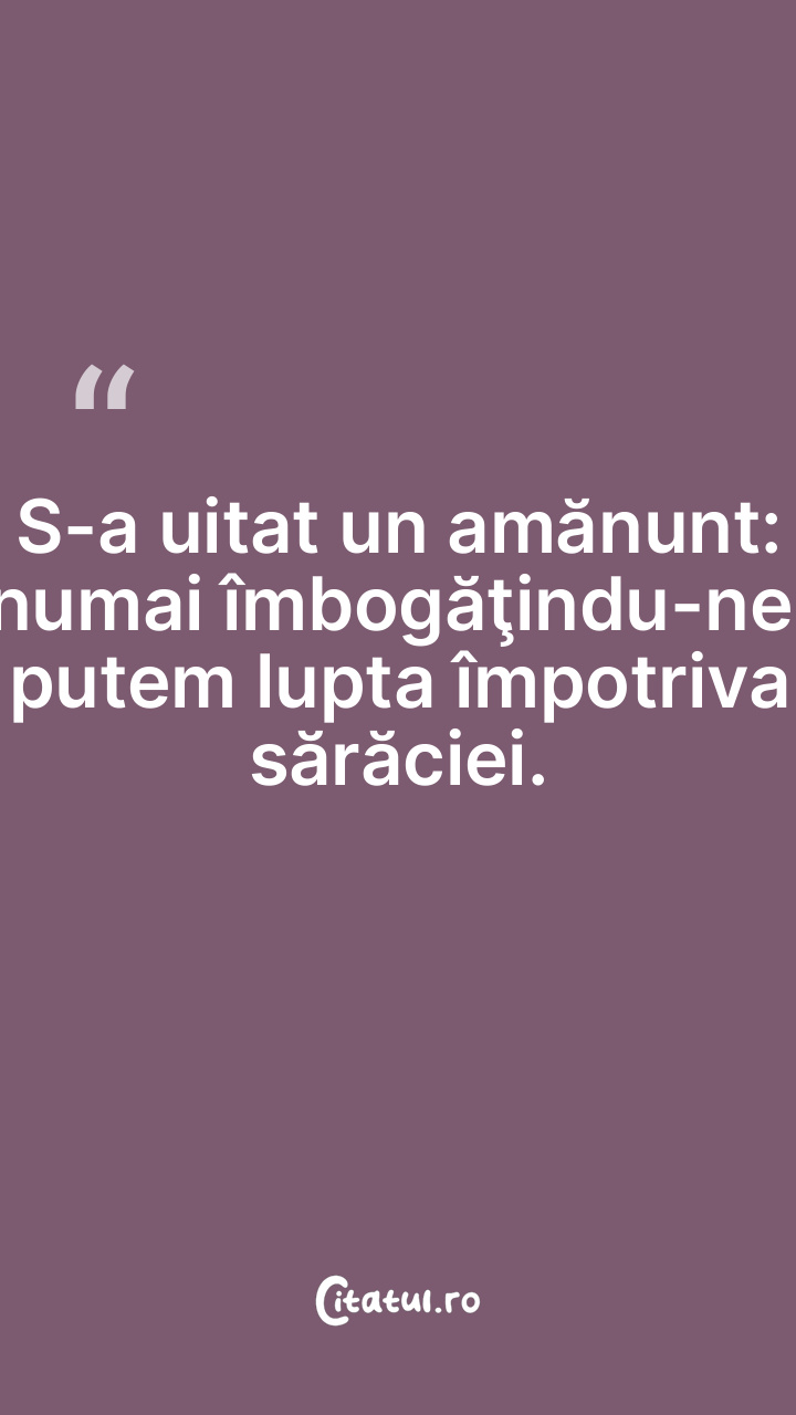 S-a uitat un amănunt: numai îmbogăţindu-ne, putem lupta împotriva sărăciei.