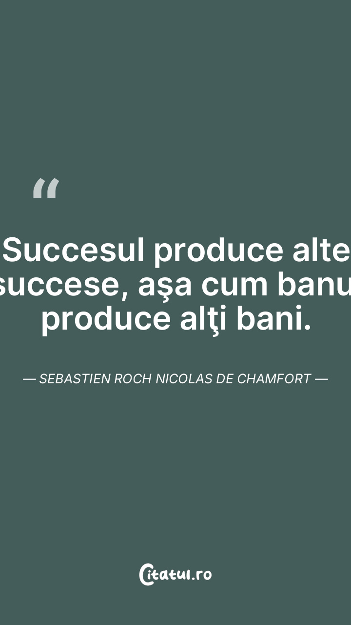 Succesul produce alte succese, aşa cum banul produce alţi bani. Sebastien Roch Nicolas de Chamfort