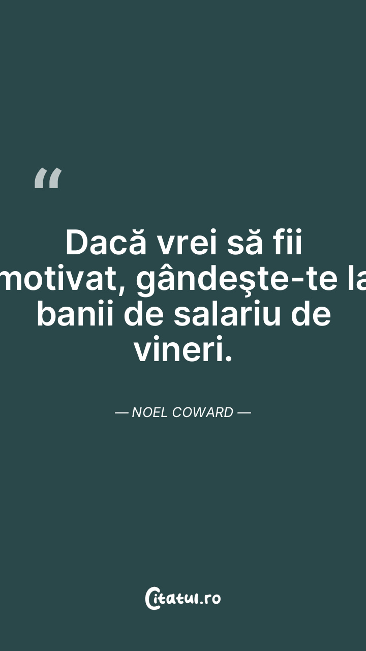 Dacă vrei să fii motivat, gândeşte-te la banii de salariu de vineri. Noel Coward