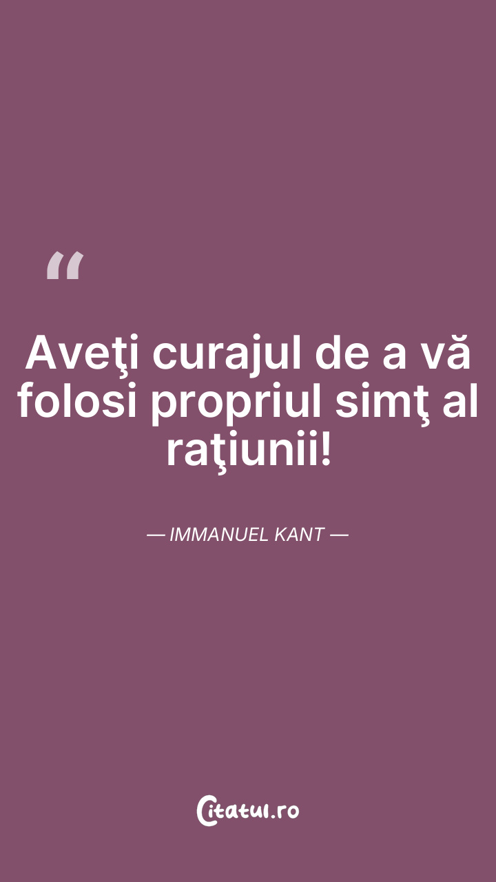 Aveţi curajul de a vă folosi propriul simţ al raţiunii! Immanuel Kant