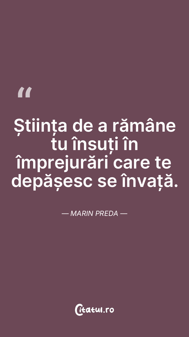 Știința de a rămâne tu însuți în împrejurări care te depășesc se învață. Marin Preda