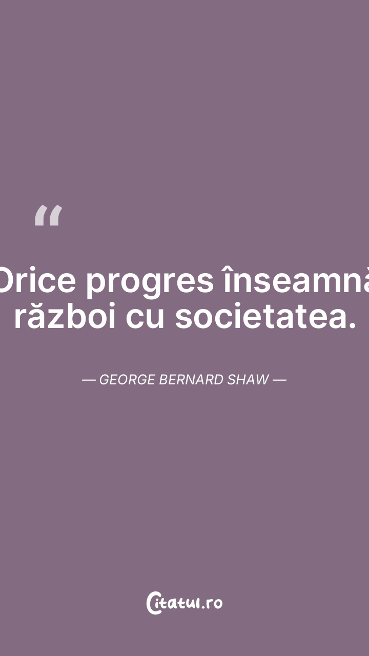Orice progres înseamnă război cu societatea. George Bernard Shaw