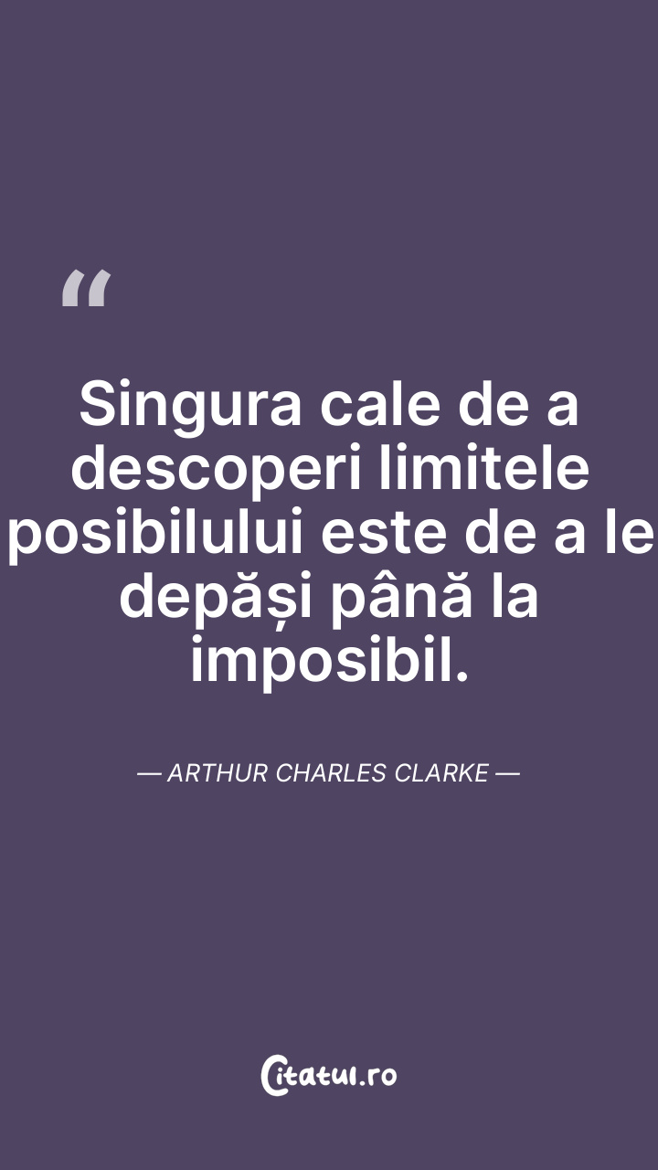 Singura cale de a descoperi limitele posibilului este de a le depăși până la imposibil. Arthur Charles Clarke