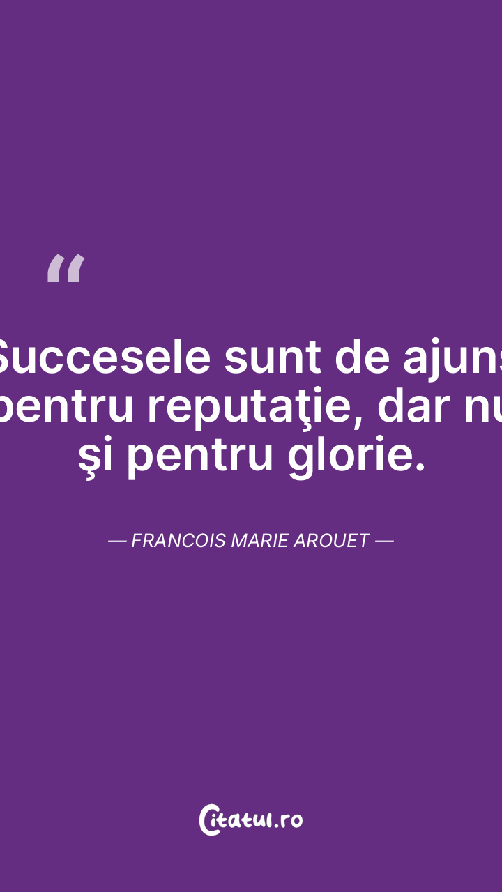 Succesele sunt de ajuns pentru reputaţie, dar nu şi pentru glorie. Francois Marie Arouet