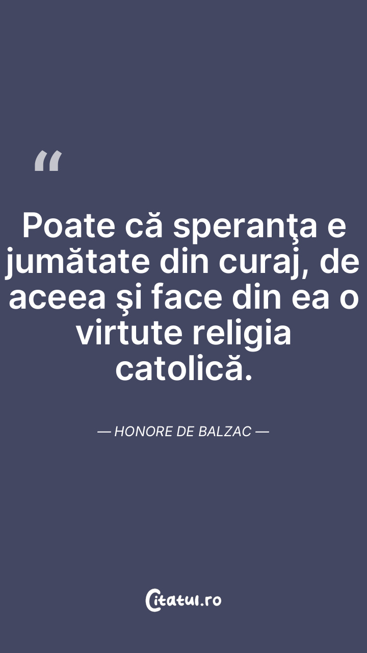 Poate că speranţa e jumătate din curaj, de aceea şi face din ea o virtute religia catolică. Honore de Balzac