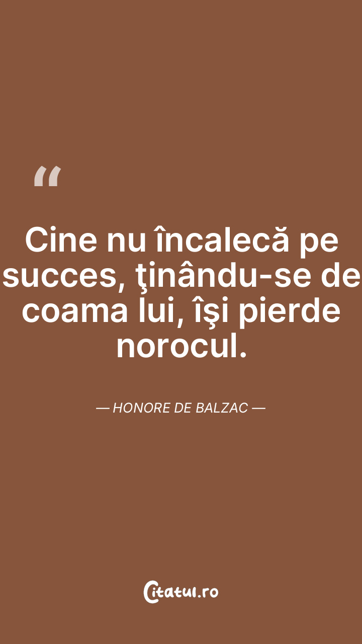 Cine nu încalecă pe succes, ţinându-se de coama lui, îşi pierde norocul. Honore de Balzac