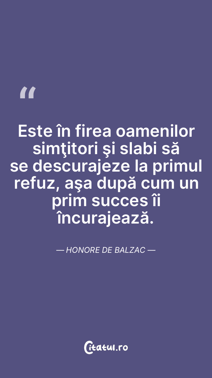Este în firea oamenilor simţitori şi slabi să se descurajeze la primul refuz, aşa după cum un prim succes îi încurajează. Honore de Balzac