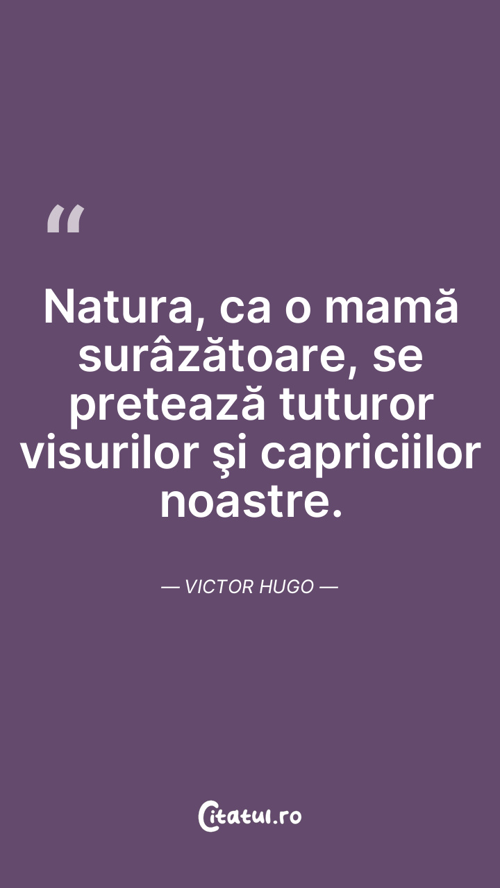 Natura, ca o mamă surâzătoare, se pretează tuturor visurilor şi capriciilor noastre. Victor Hugo