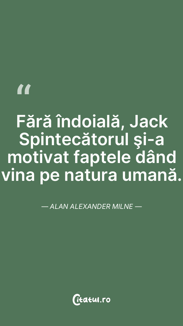 Fără îndoială, Jack Spintecătorul şi-a motivat faptele dând vina pe natura umană. Alan Alexander Milne