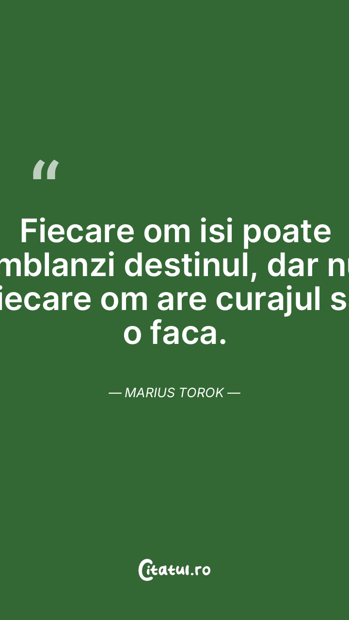 Fiecare om isi poate imblanzi destinul, dar nu fiecare om are curajul sa o faca. Marius Torok