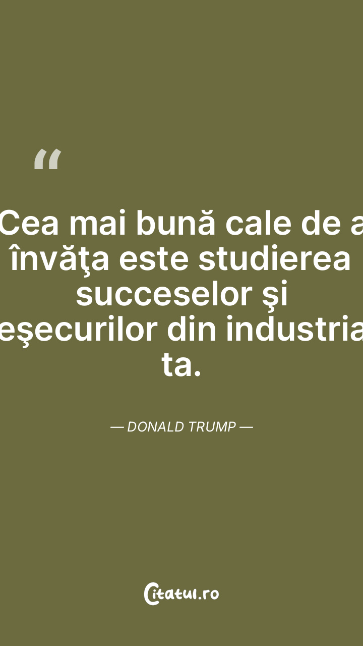 Cea mai bună cale de a învăţa este studierea succeselor şi eşecurilor din industria ta. Donald Trump