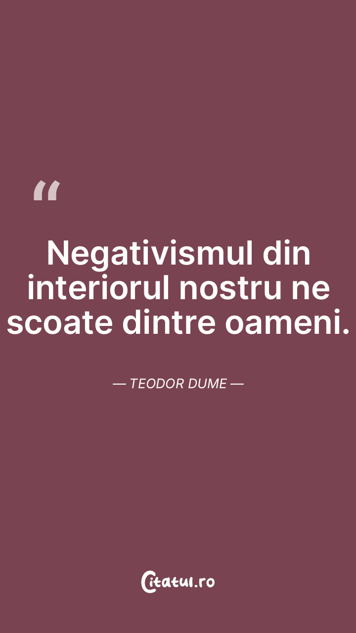 Negativismul din interiorul nostru ne scoate dintre oameni. Teodor Dume
