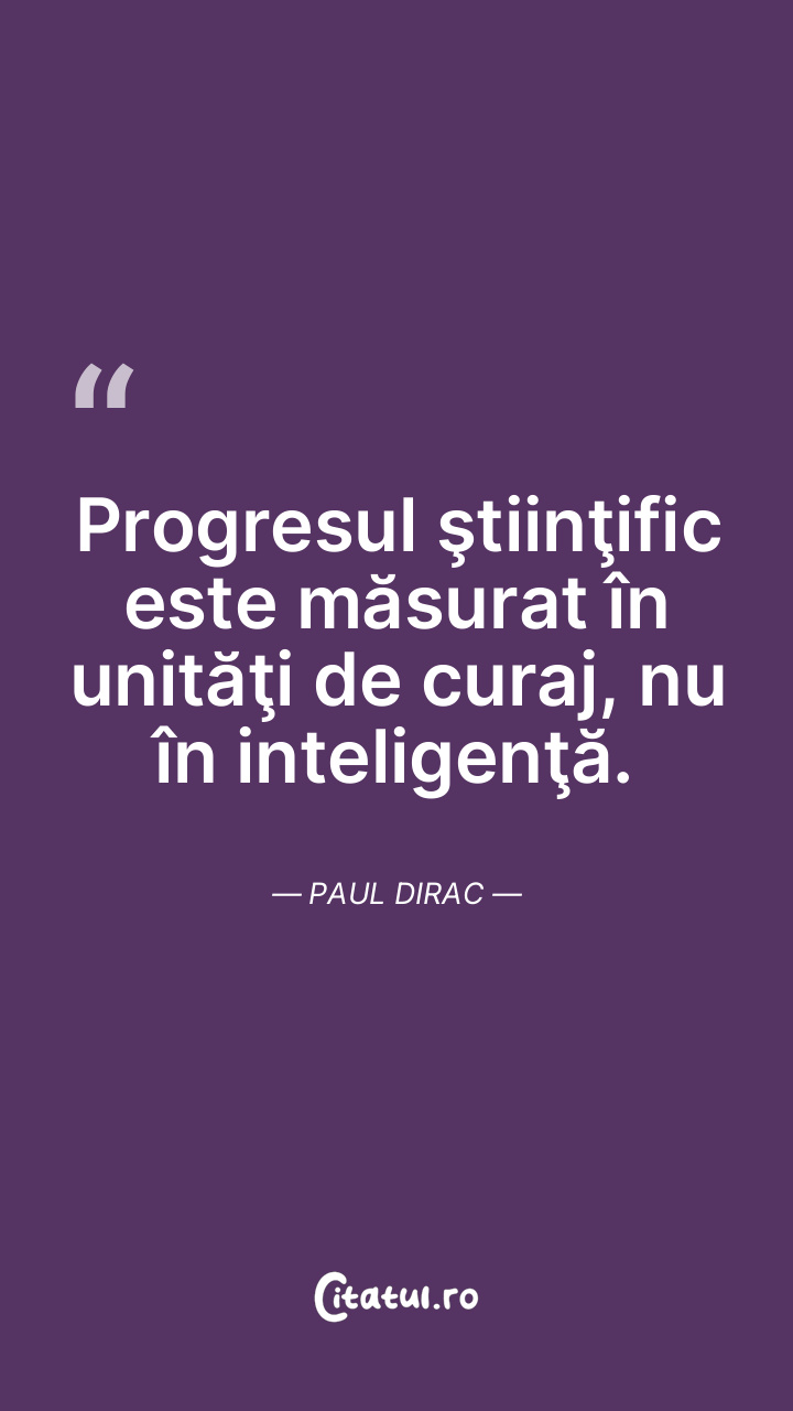 Progresul ştiinţific este măsurat în unităţi de curaj, nu în inteligenţă. Paul Dirac