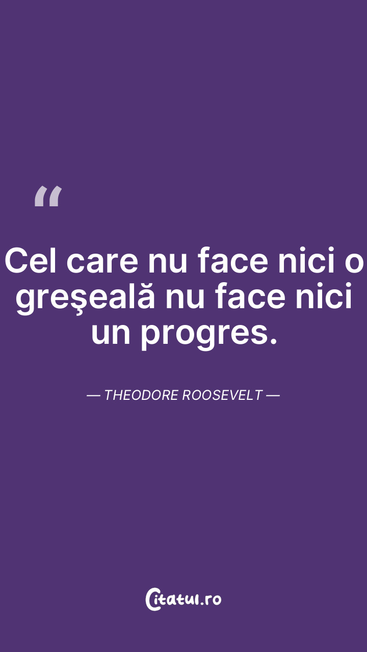 Cel care nu face nici o greşeală nu face nici un progres. Theodore Roosevelt