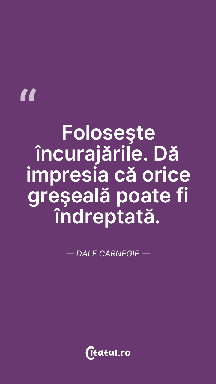 Foloseşte încurajările. Dă impresia că orice greşeală poate fi îndreptată. Dale Carnegie