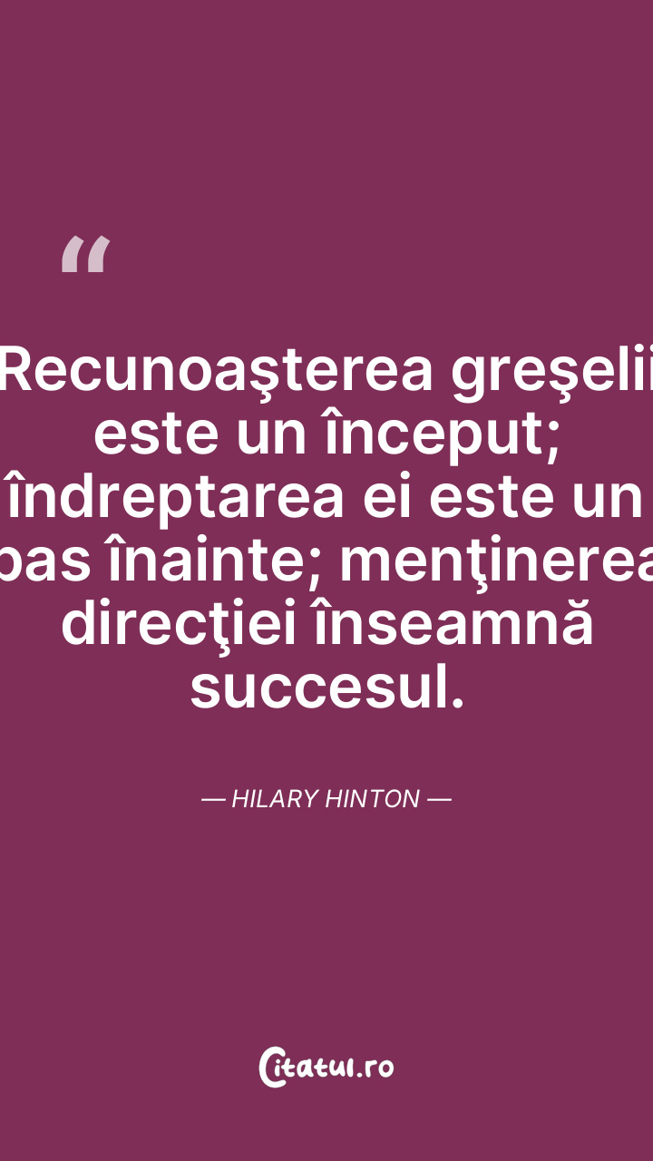 Recunoaşterea greşelii este un început; îndreptarea ei este un pas înainte; menţinerea direcţiei înseamnă succesul. Hilary Hinton