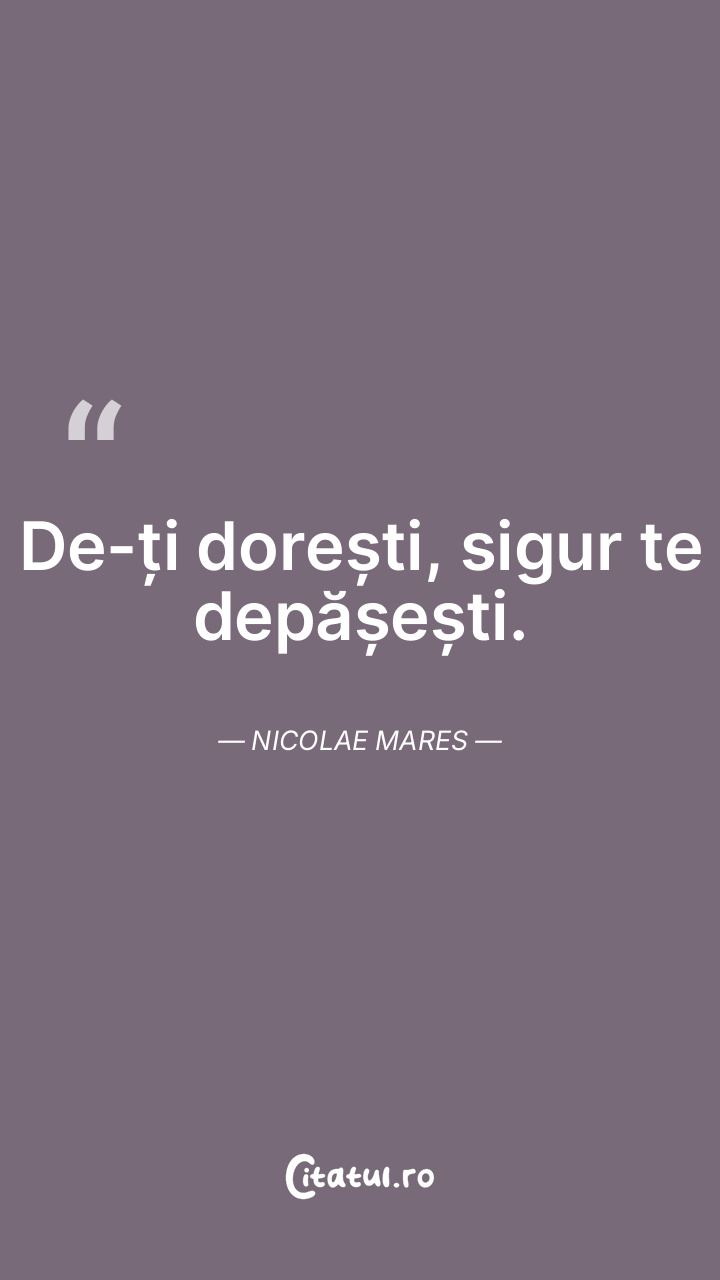 De-ți dorești, sigur te depășești. Nicolae Mares ...