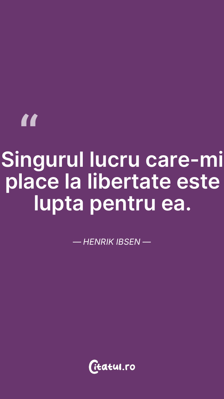 Singurul lucru care-mi place la libertate este lupta pentru ea. Henrik Ibsen