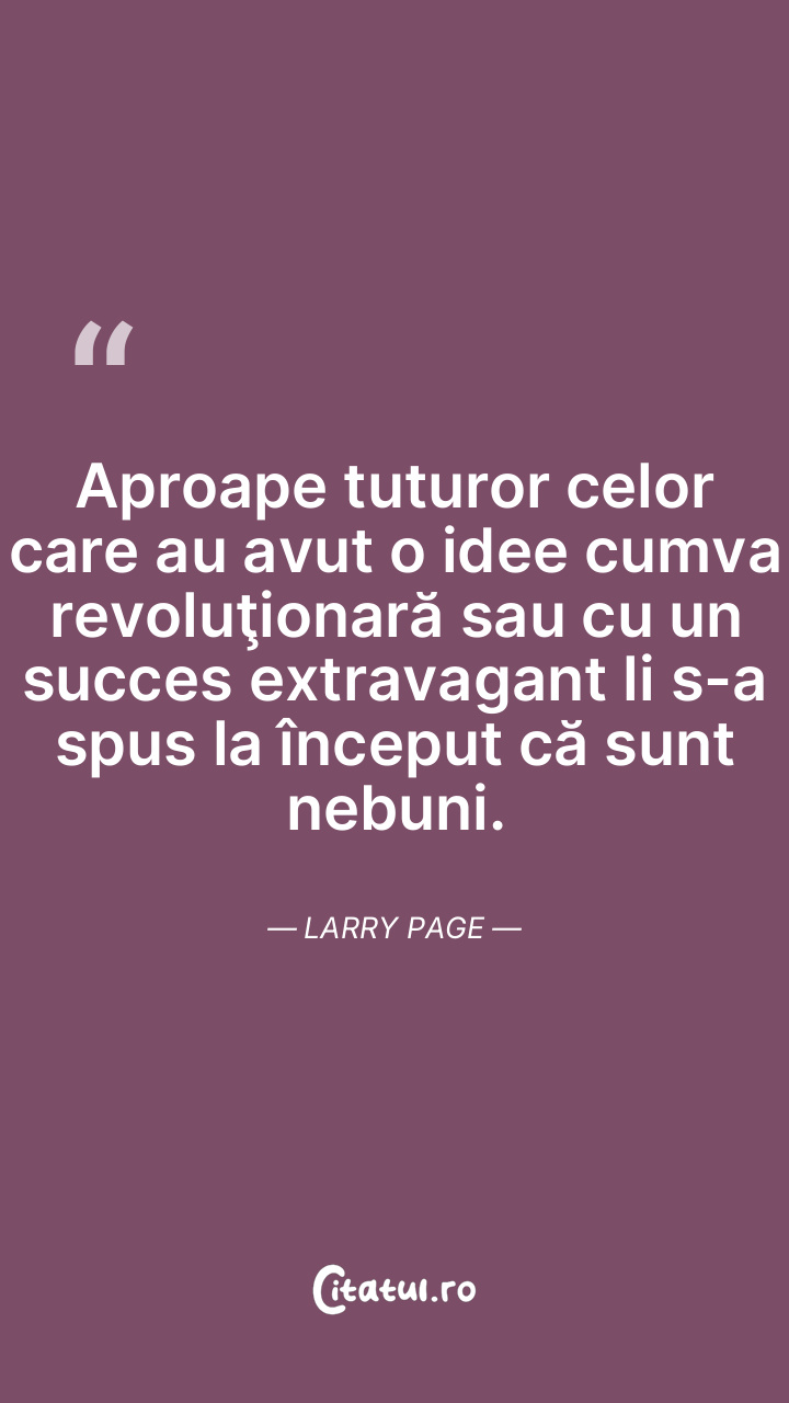 Aproape tuturor celor care au avut o idee cumva revoluţionară sau cu un succes extravagant li s-a spus la început că sunt nebuni. Larry Page