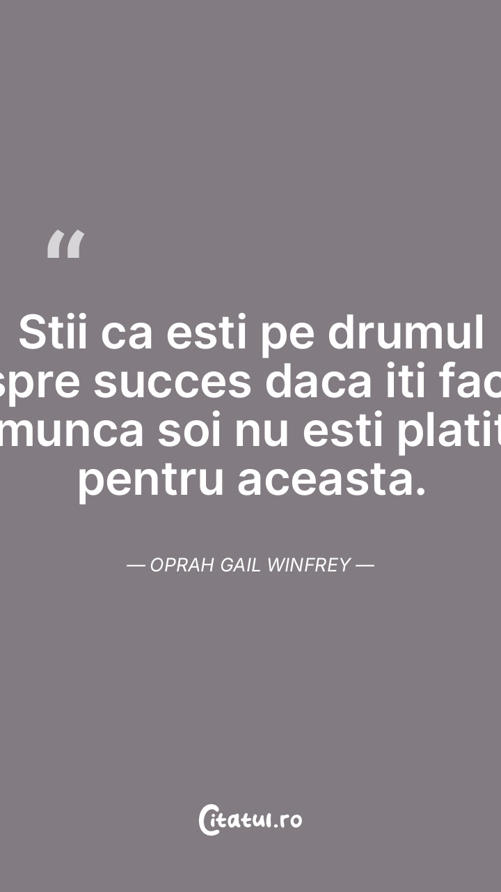 Stii ca esti pe drumul spre succes daca iti faci munca soi nu esti platit pentru aceasta. Oprah Gail Winfrey