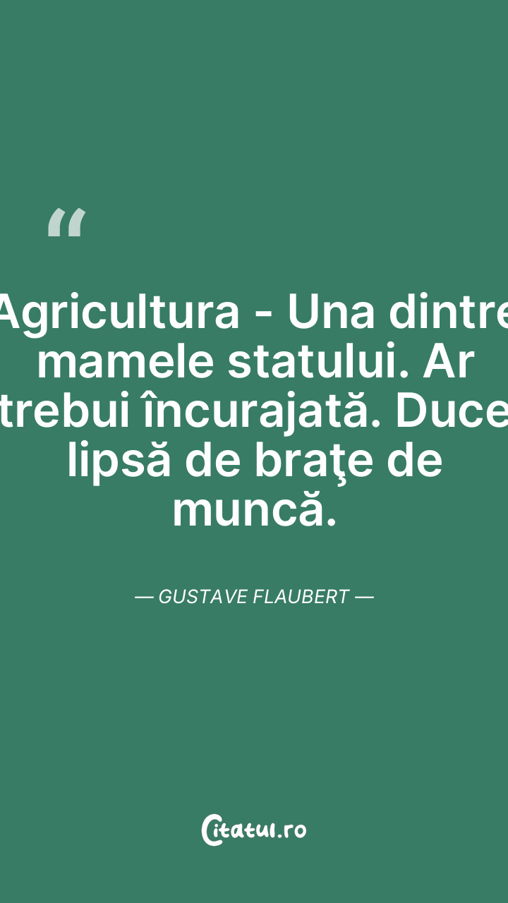 Agricultura - Una dintre mamele statului. Ar trebui încurajată. Duce lipsă de braţe de muncă. Gustave Flaubert