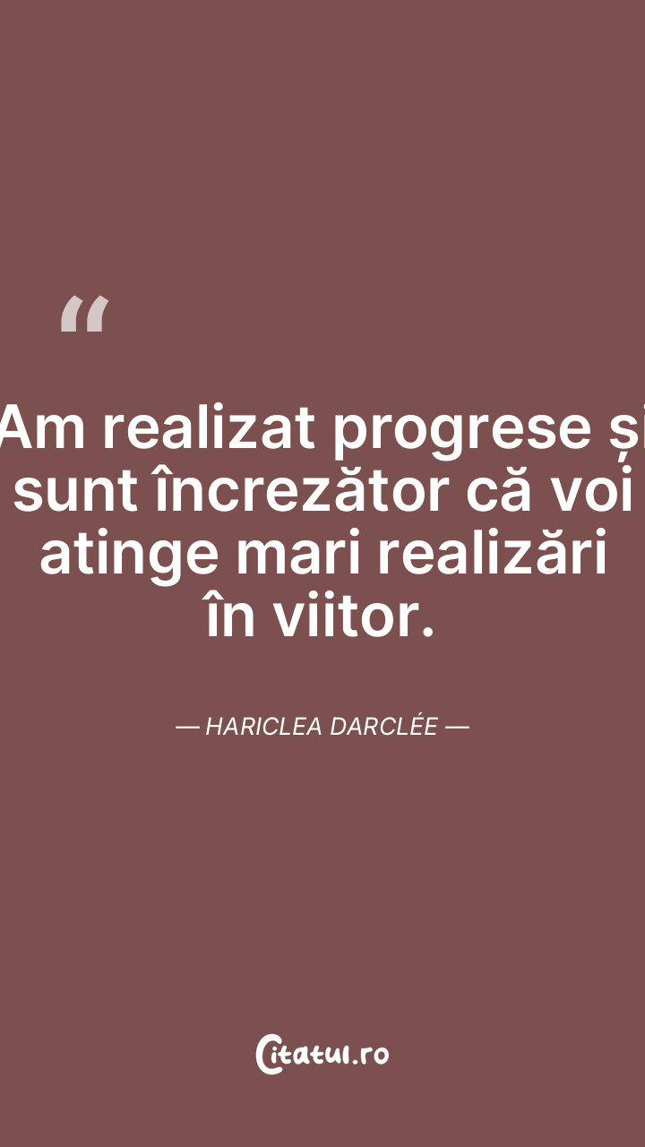 Am realizat progrese și sunt încrezător că voi atinge mari realizări în viitor. Hariclea Darclée