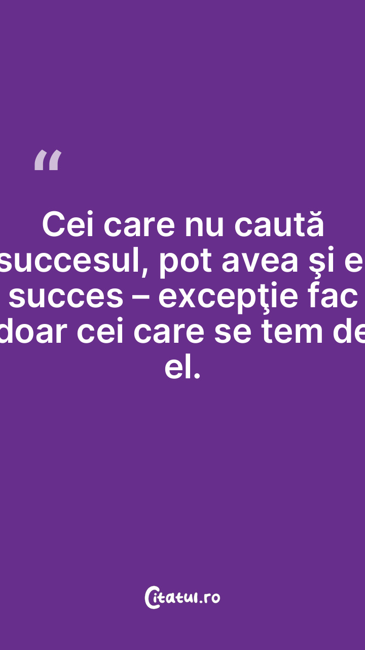 Cei care nu caută succesul, pot avea şi ei succes – excepţie fac doar cei care se tem de el.