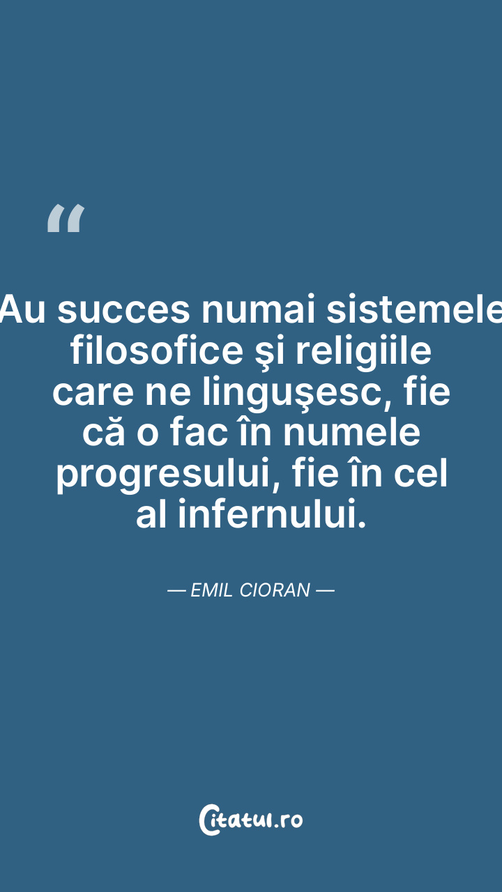 Au succes numai sistemele filosofice şi religiile care ne linguşesc, fie că o fac în numele progresului, fie în cel al infernului. Emil Cioran